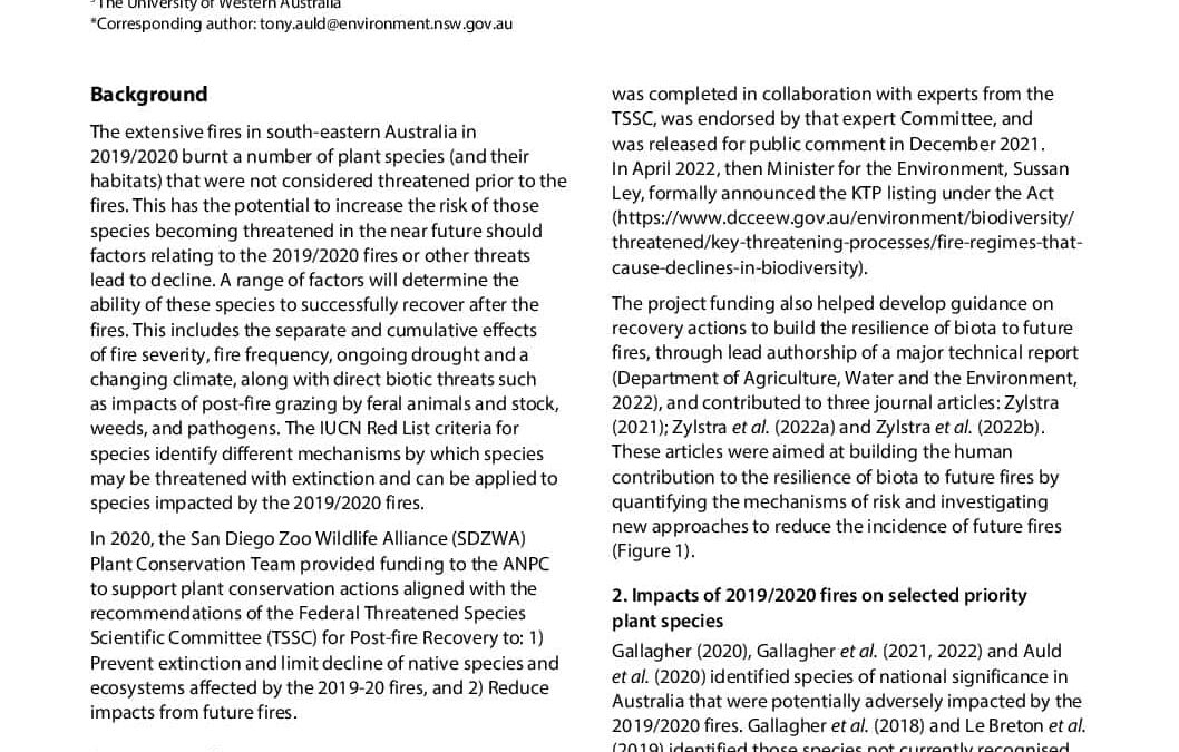 Preventing rare plant extinctions after the Black Summer bushfires